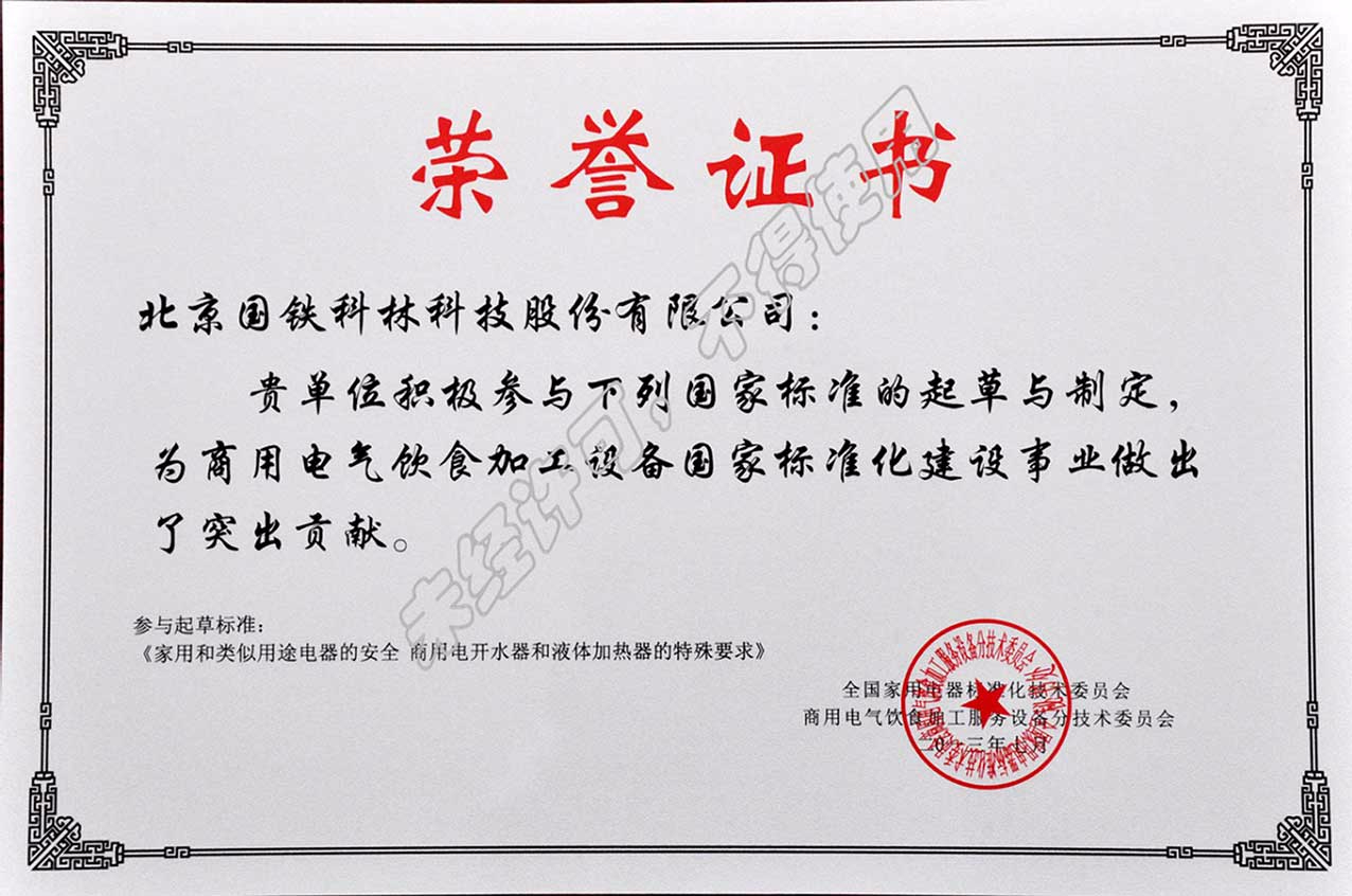 國家標(biāo)準(zhǔn)起草與制定榮譽(yù)證書